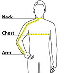 | Chest | 32-34 | 35-37 | 38-40 | 41-43 | 44-46 | 47-49 | 50-53 | 54-57 | 58-60 | 61-63 |
